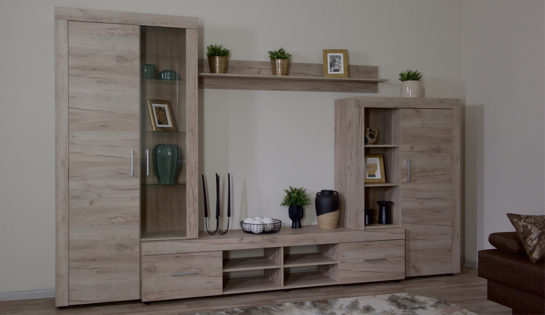 Стенка Джерси – светлая, компактная и функциональная. Беспроигрышный вариант для небольших комнат. В стенке используются новейшие тенденции: новое поколение декоров из коллекции Кроношпан (Австрия) 2018-2020, утолщенные линии корпуса, вместительные ящики полного выдвижения, регулируемые ножки. Древесный цвет, рисунок и фактура - гостиная подойдет под любой интерьер, создаст дома теплую уютную атмосферу. Дополнительно комплектуется подсветкой. Выполнена из экологичных материалов.