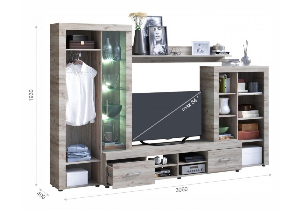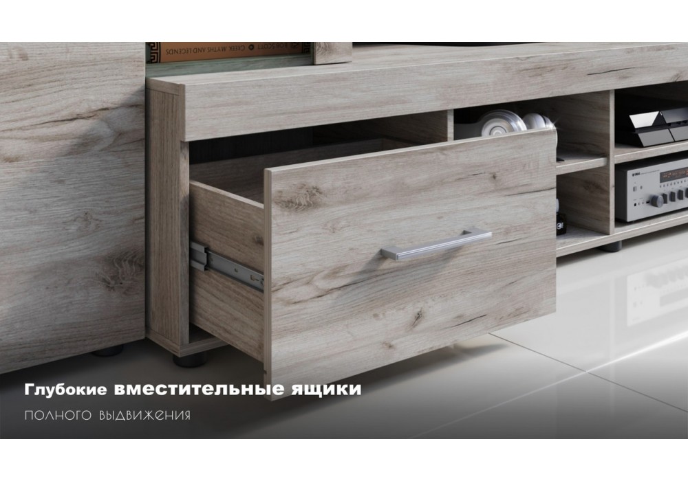 Стенка Джерси – светлая, компактная и функциональная. Беспроигрышный вариант для небольших комнат. В стенке используются новейшие тенденции: новое поколение декоров из коллекции Кроношпан (Австрия) 2018-2020, утолщенные линии корпуса, вместительные ящики полного выдвижения, регулируемые ножки. Древесный цвет, рисунок и фактура - гостиная подойдет под любой интерьер, создаст дома теплую уютную атмосферу. Дополнительно комплектуется подсветкой Выполнена из экологичных материалов