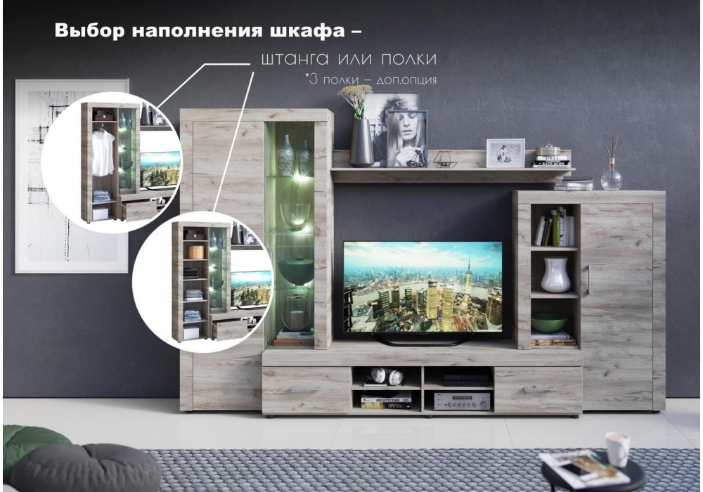 Стенка «Рио 3» (кашемир/дуб каньон) Олмеко
