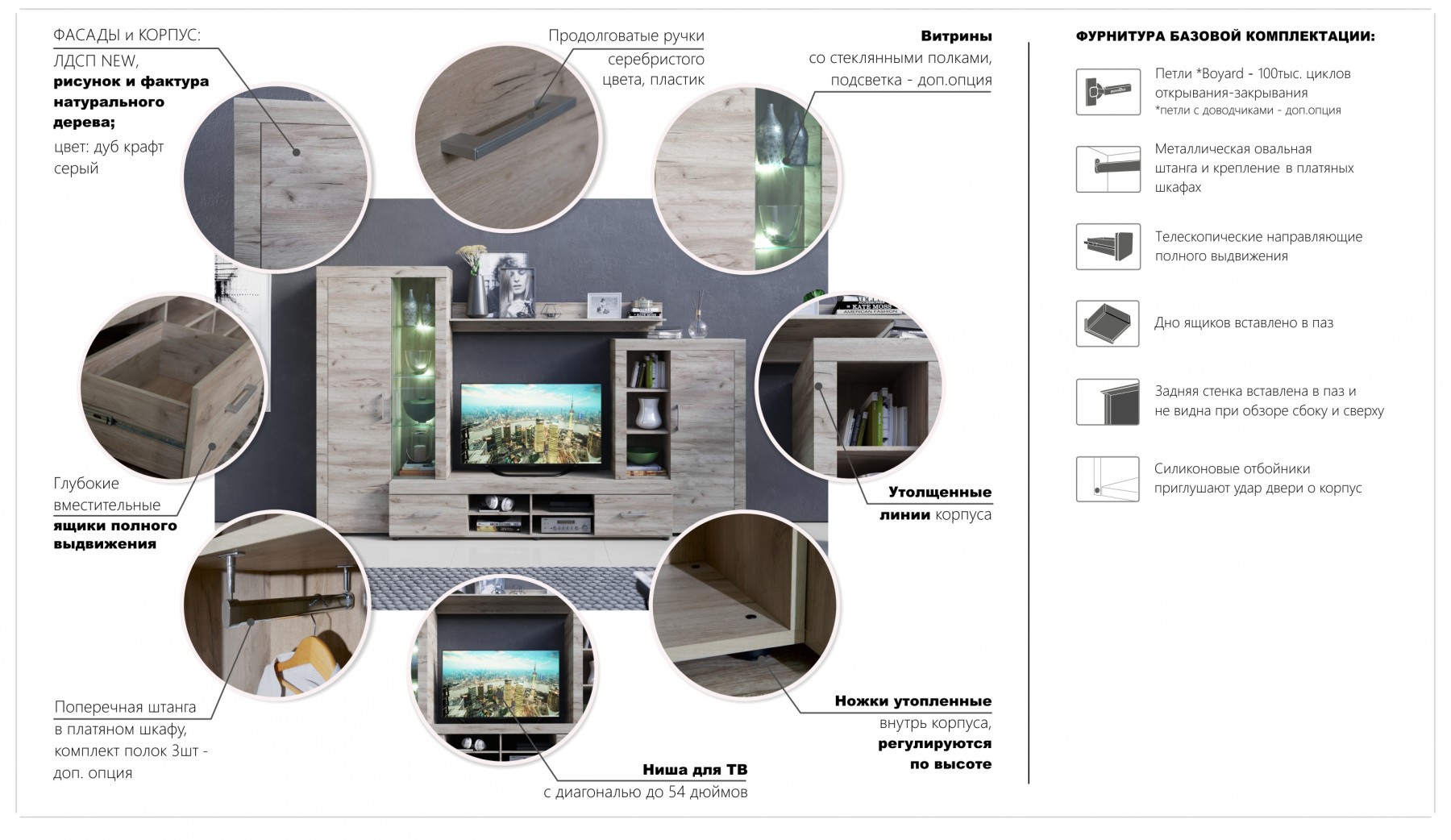 Стенка Джерси – светлая, компактная и функциональная. Беспроигрышный вариант для небольших комнат. В стенке используются новейшие тенденции: новое поколение декоров из коллекции Кроношпан (Австрия) 2018-2020, утолщенные линии корпуса, вместительные ящики полного выдвижения, регулируемые ножки. Древесный цвет, рисунок и фактура - гостиная подойдет под любой интерьер, создаст дома теплую уютную атмосферу. Дополнительно комплектуется подсветкой. Выполнена из экологичных материалов.