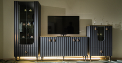 Роскошная модульная коллекция мебели с "волнистыми" фасадами для гостиной. Материал: МДФ покрытый плёнкой, ЛДСП.