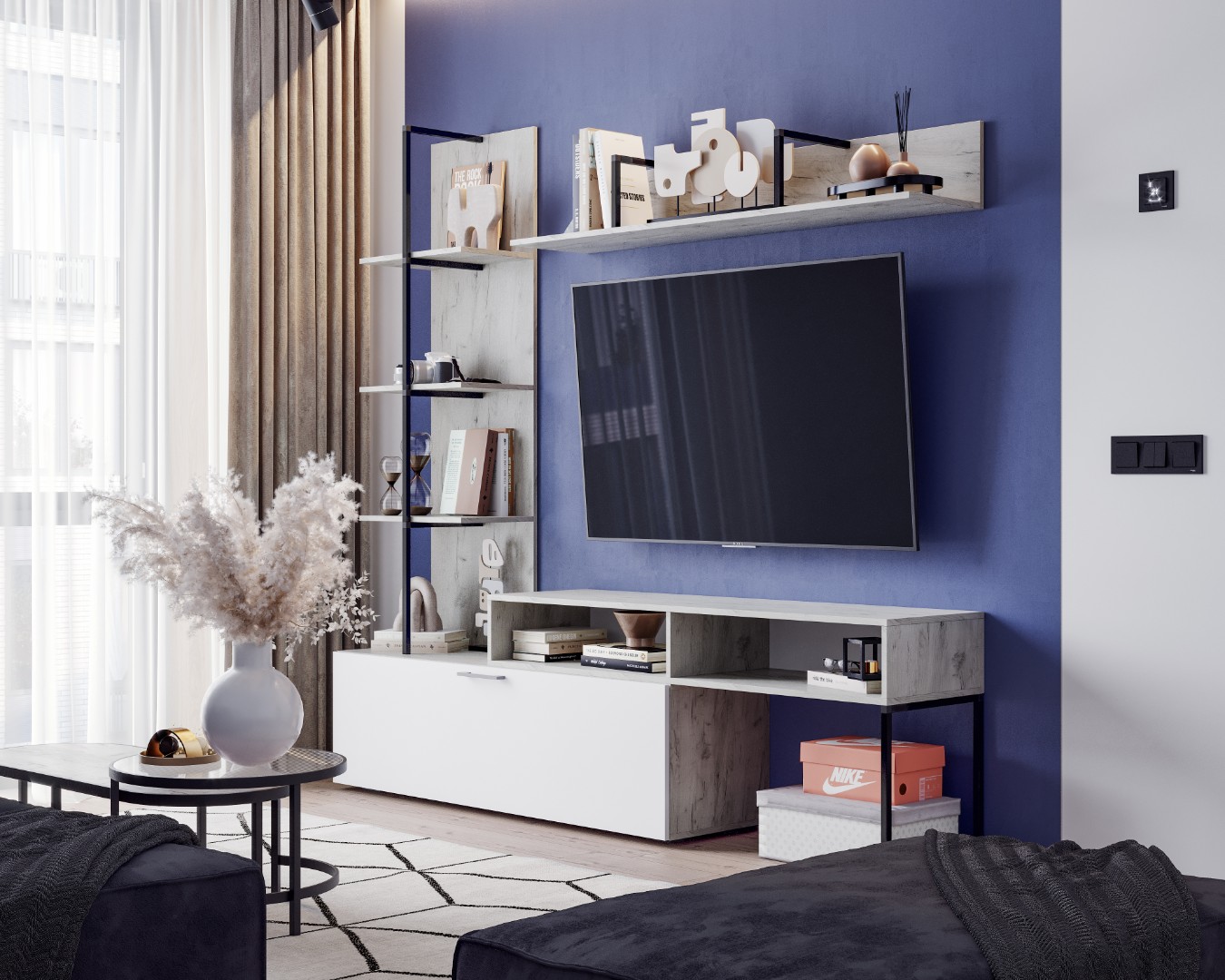 Гостиная «Элирия» Дуб крафт белый/Белый (Стендмебель)