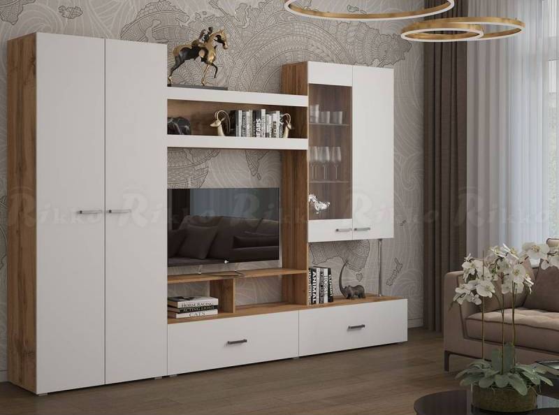 Гостиная «Эверест-1» 2,8 м (дуб вотан - белый шагрень)