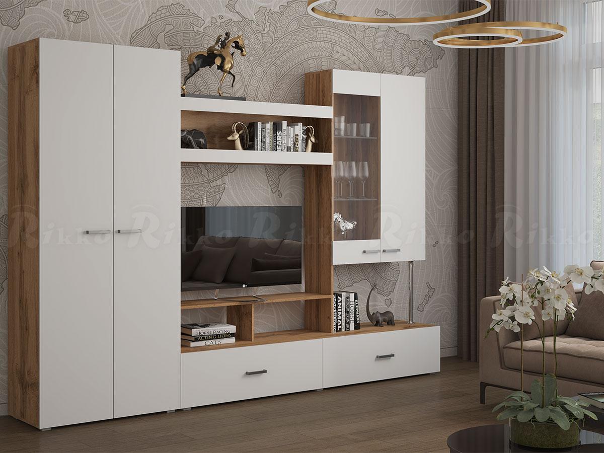 Гостиная «Эверест-1» Дуб вотан/белый шагрень Рикко