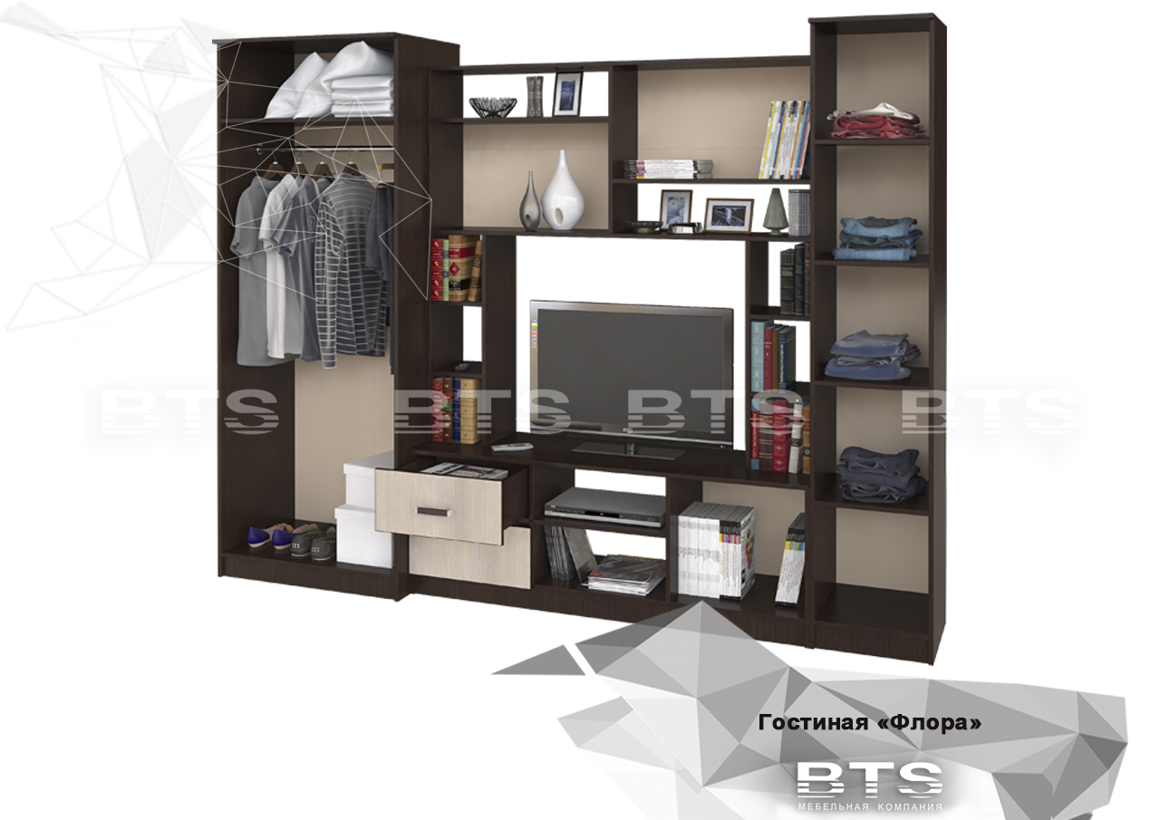 Гостиная «Флора» Ясень шимо/Дуб атланта (BTS)