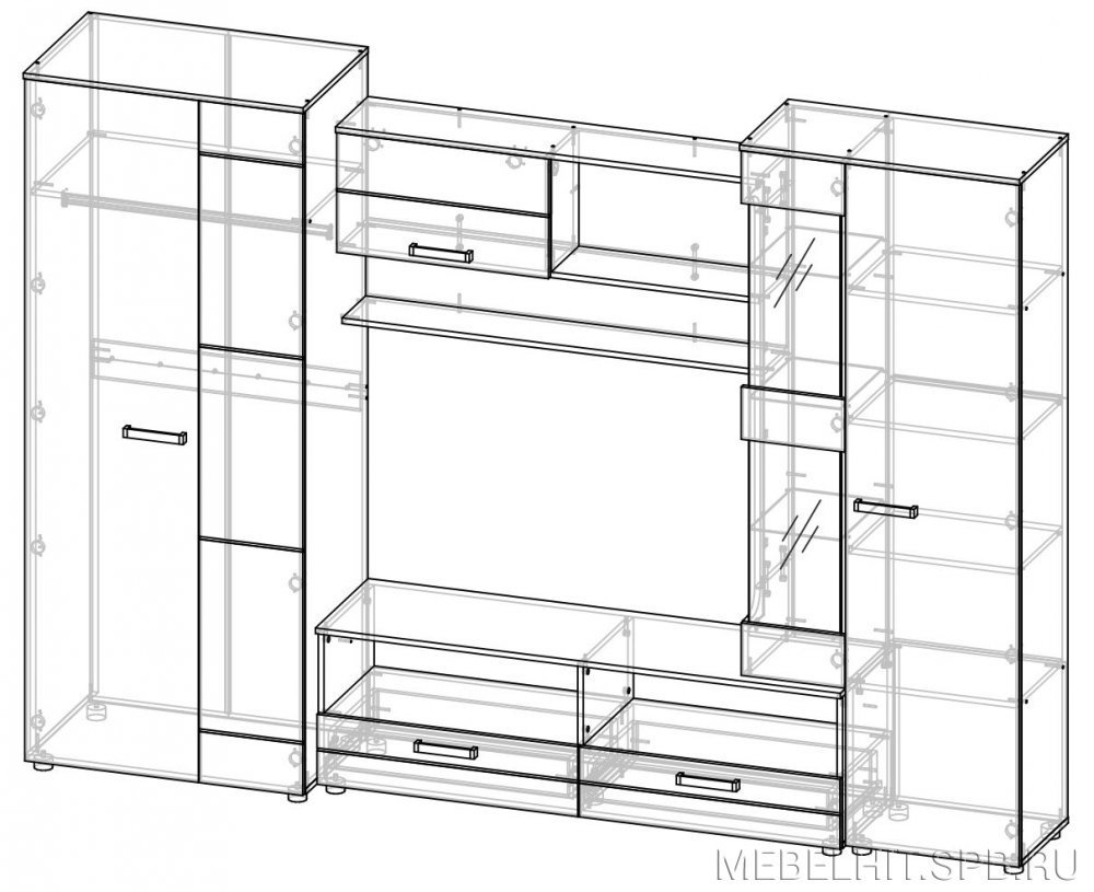 Гостиная «Нео» 2,13 м (антрацит - белый бриллиант)