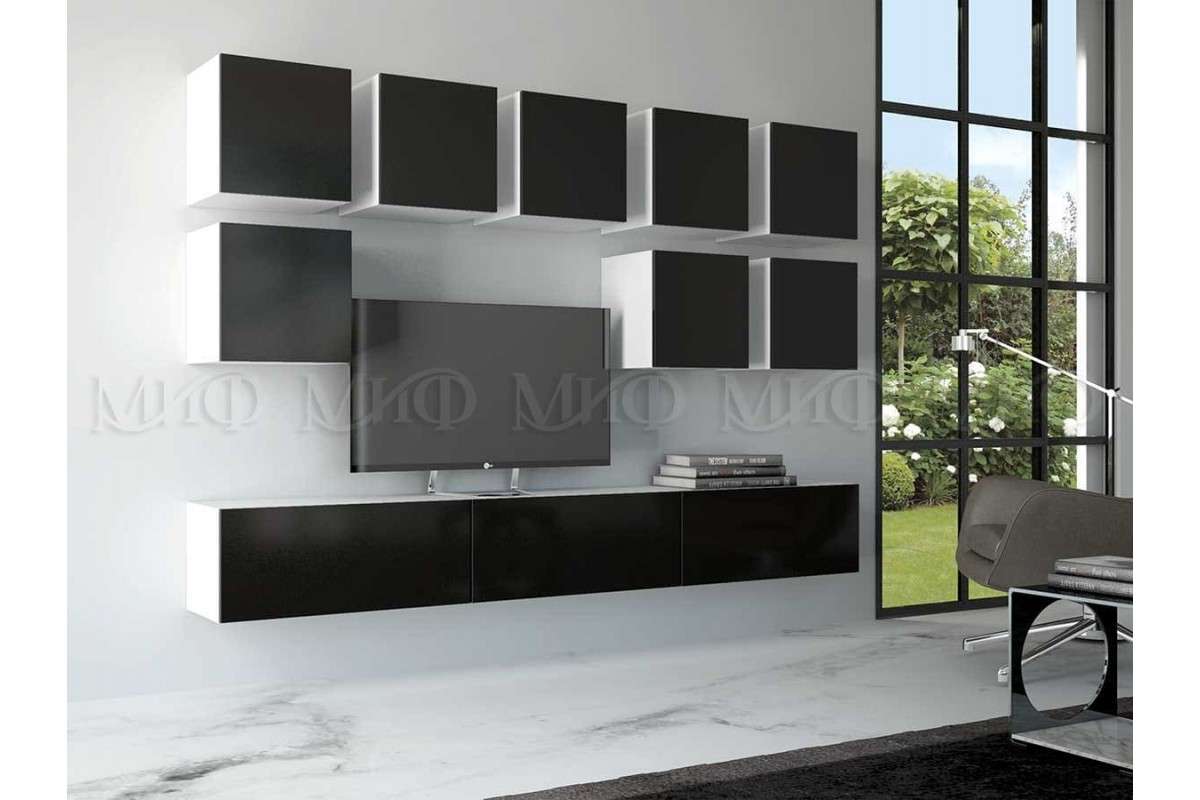 Гостиная «Флорис-4» (белый - пластер блэк)