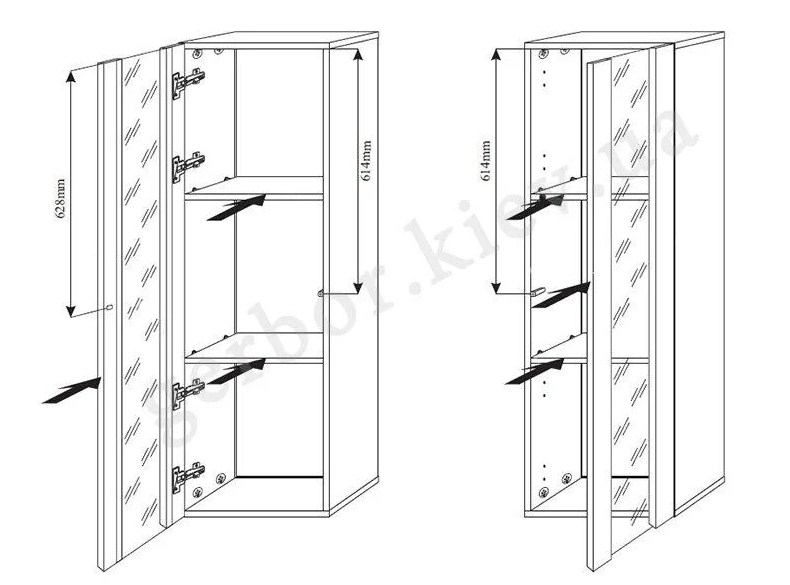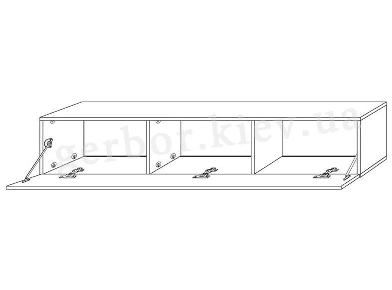 шир./выс./гл. – 160/30/40 см, одна глянцевая дверь, открывающаяся вниз, три отделения внутри;