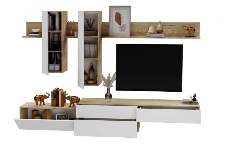 Гостиная «Прага 5» (Белый - Бетон Пайн белый)