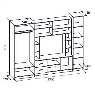 Размер: 2590x450x2100 мм. Материал: МДФ/ЛДСП.