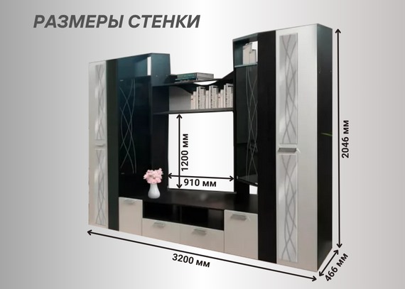Ниша под ТВ (ШхВ): 1354 х 762 мм.