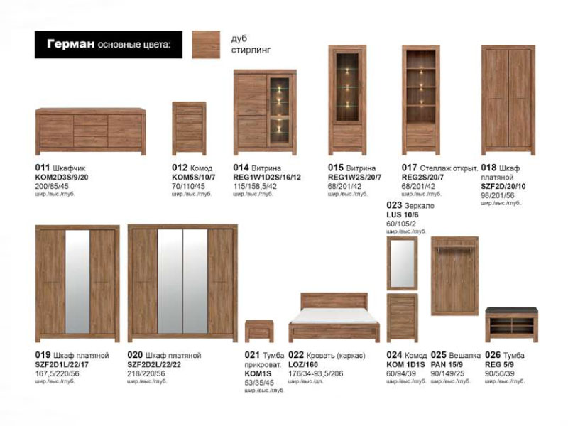 Гостиная «Герман» представлена в нескольких комплектациях, которые можно изменять по вашему желанию. Массивный корпус и фасады изготовлены из ДСП и МДФ. Отделка в насыщенном коричневом оттенке с текстурой дерева наполнит помещение уютом.