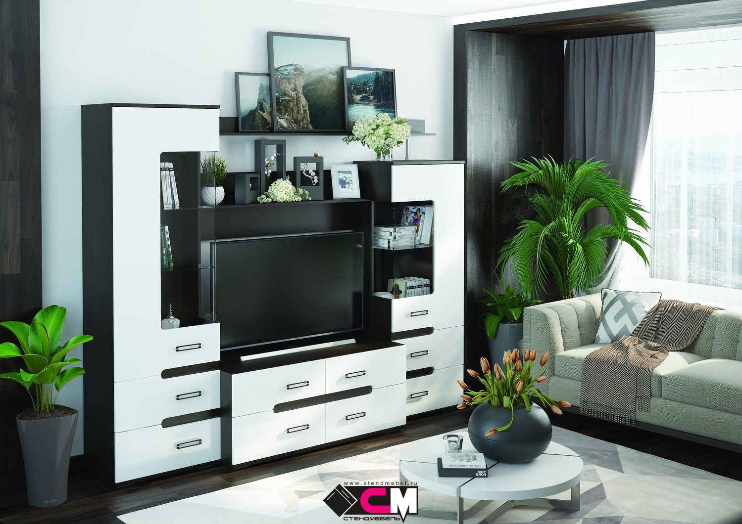 Гостиная «Града» венге / белый глянец