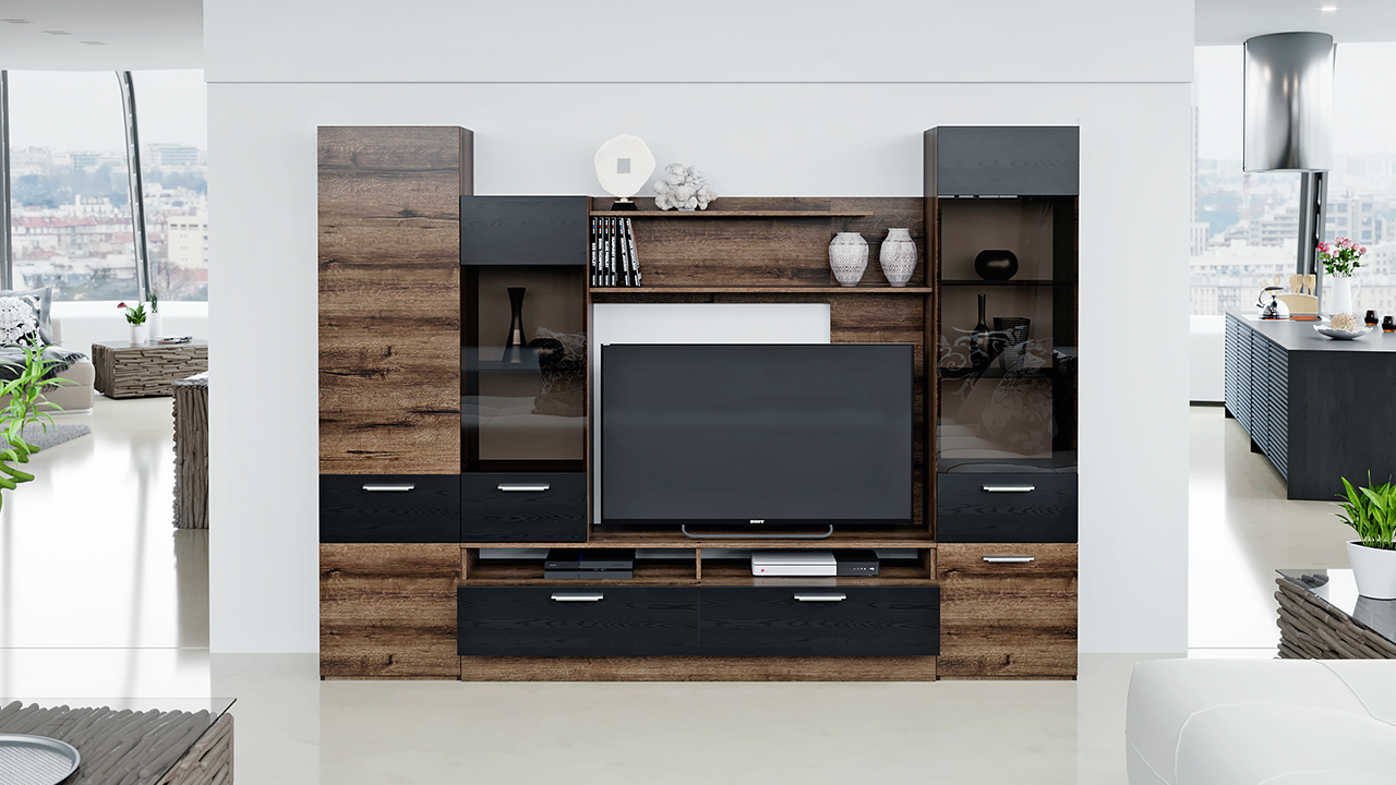 Гостиная «Гамма 2» (таксония/черный/ПВХ белый)