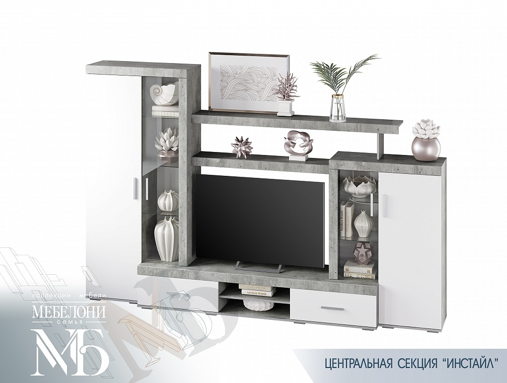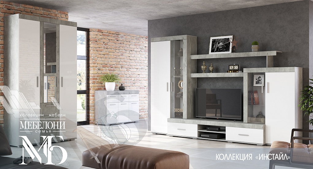 Гостиная «Инстайл» Комплект 2 - Метрополитан грей/Белый глянец (BTS)