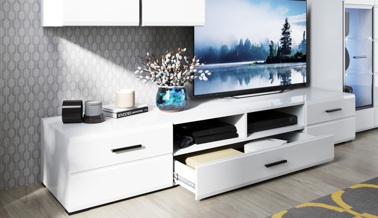 Гостиная «Йорк» с комодом Белый/Белый глянец (2.76м)