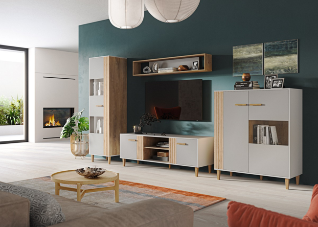 Каждый элемент гостиной «Каен» продуман до мелочей: высококачественные материалы, из которых выполнена мебель, обеспечивают долговечность и надежность, а стильная фрезеровка и аккуратные фасады делают комплект привлекательным и современным. Широкие возможности для организации пространства позволяют хранить все необходимое, сохраняя порядок и уют в вашем доме.