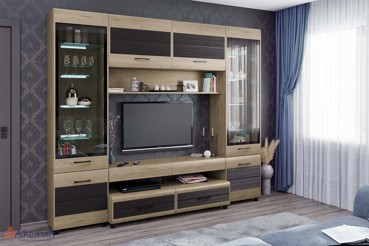 код 125538Модульная коллекция мебели в гостиную. Материал: ЛДСП, МДФ.