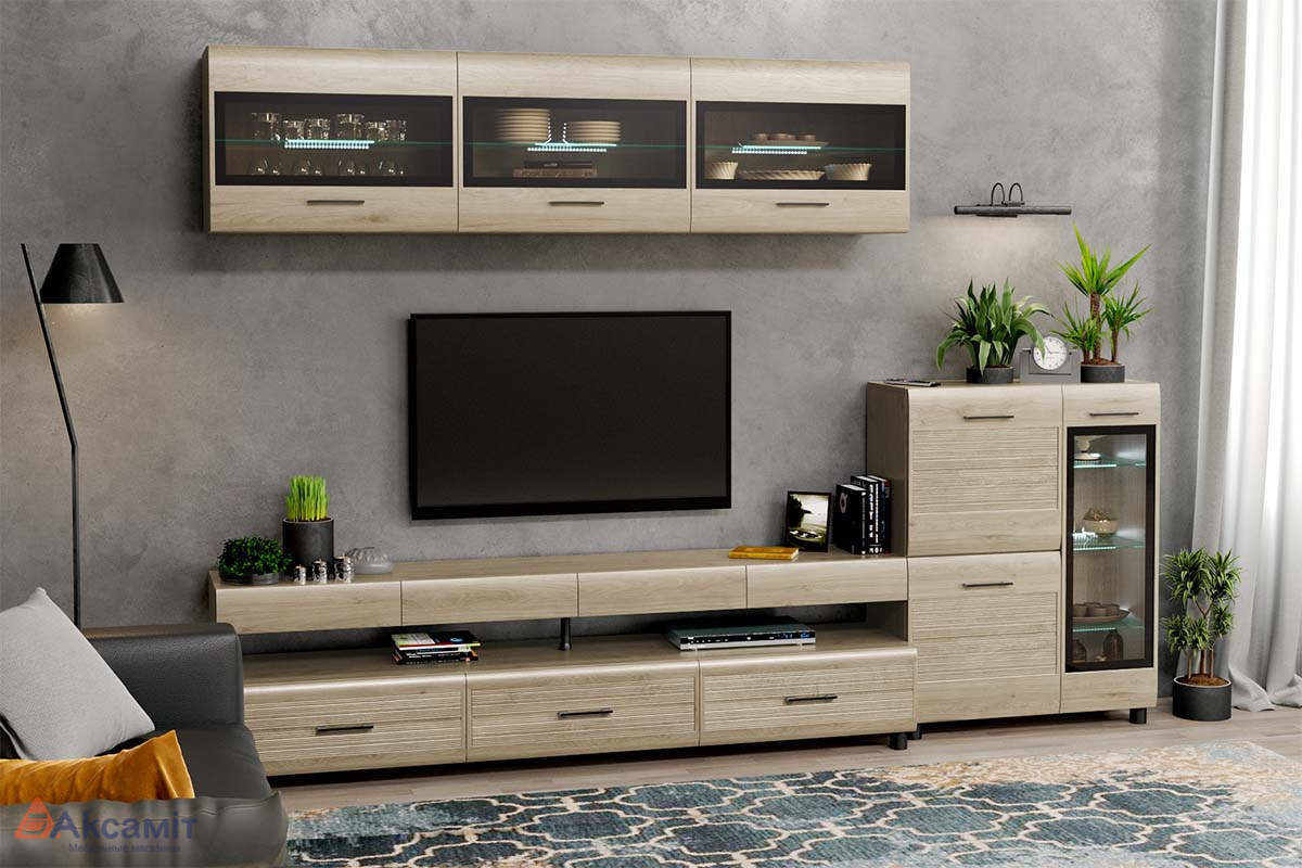 код 125560Модульная коллекция мебели в гостиную. Материал: ЛДСП, МДФ.