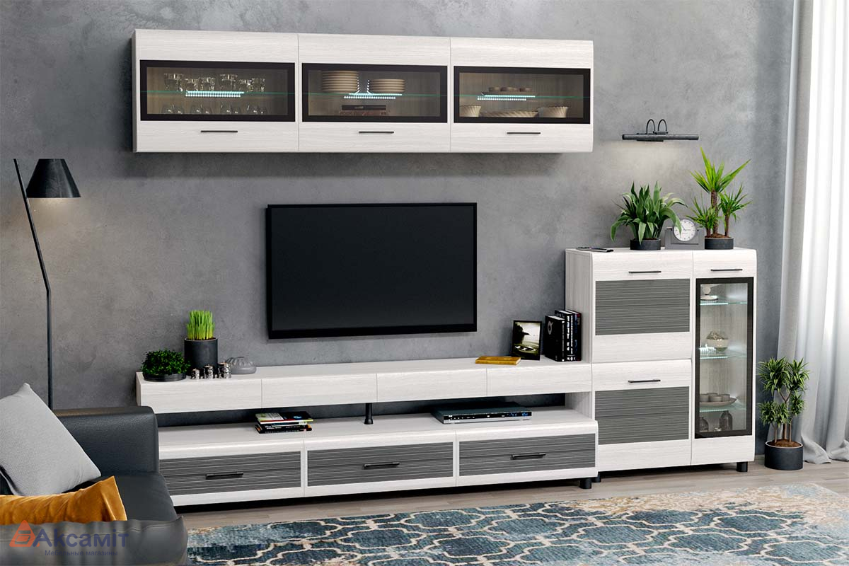 Гостиная «Камелия-12» (Снежный ясень/Серый)