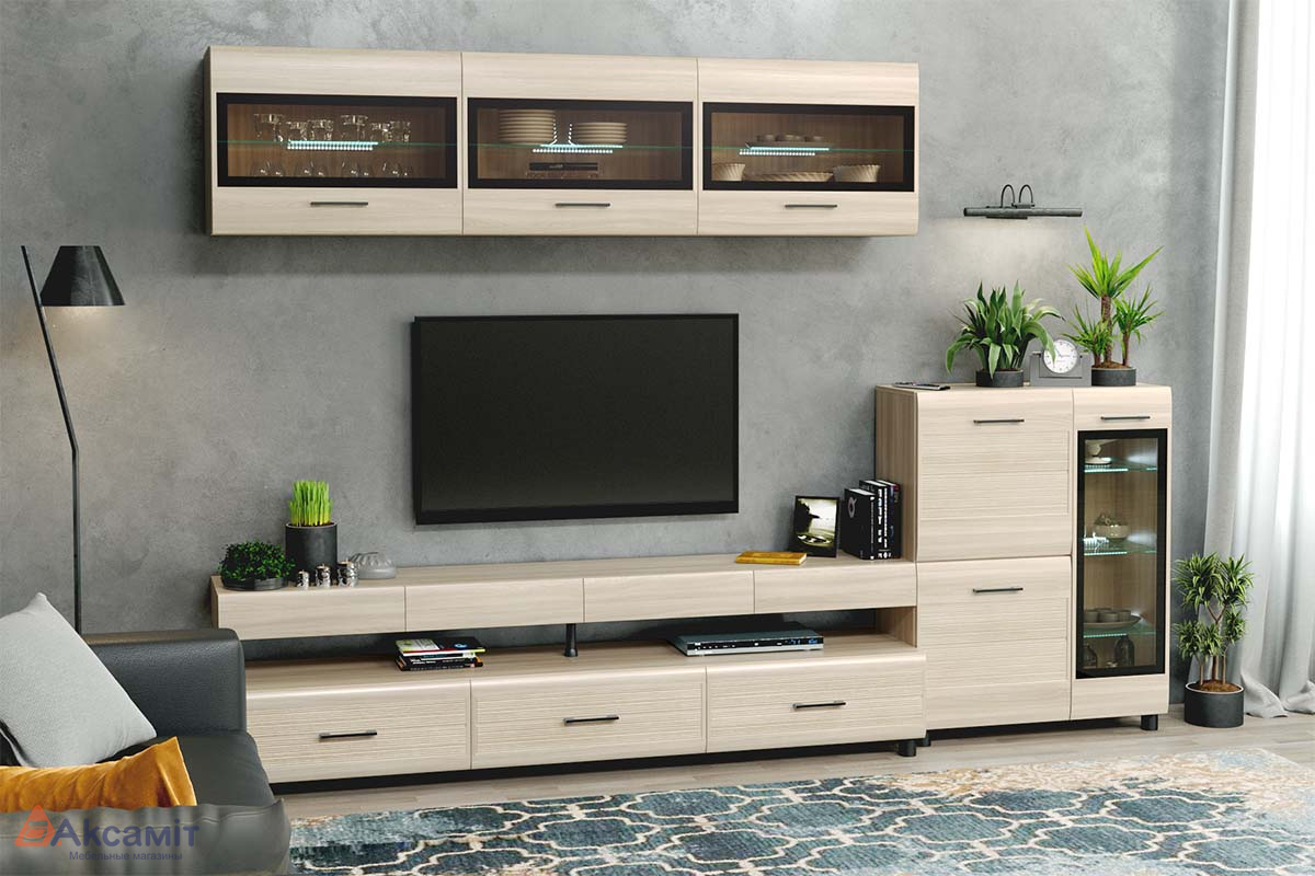 код 122755Модульный набор мебели в гостиную. Материал: ЛДСП, МДФ. Европейская фурнитура.