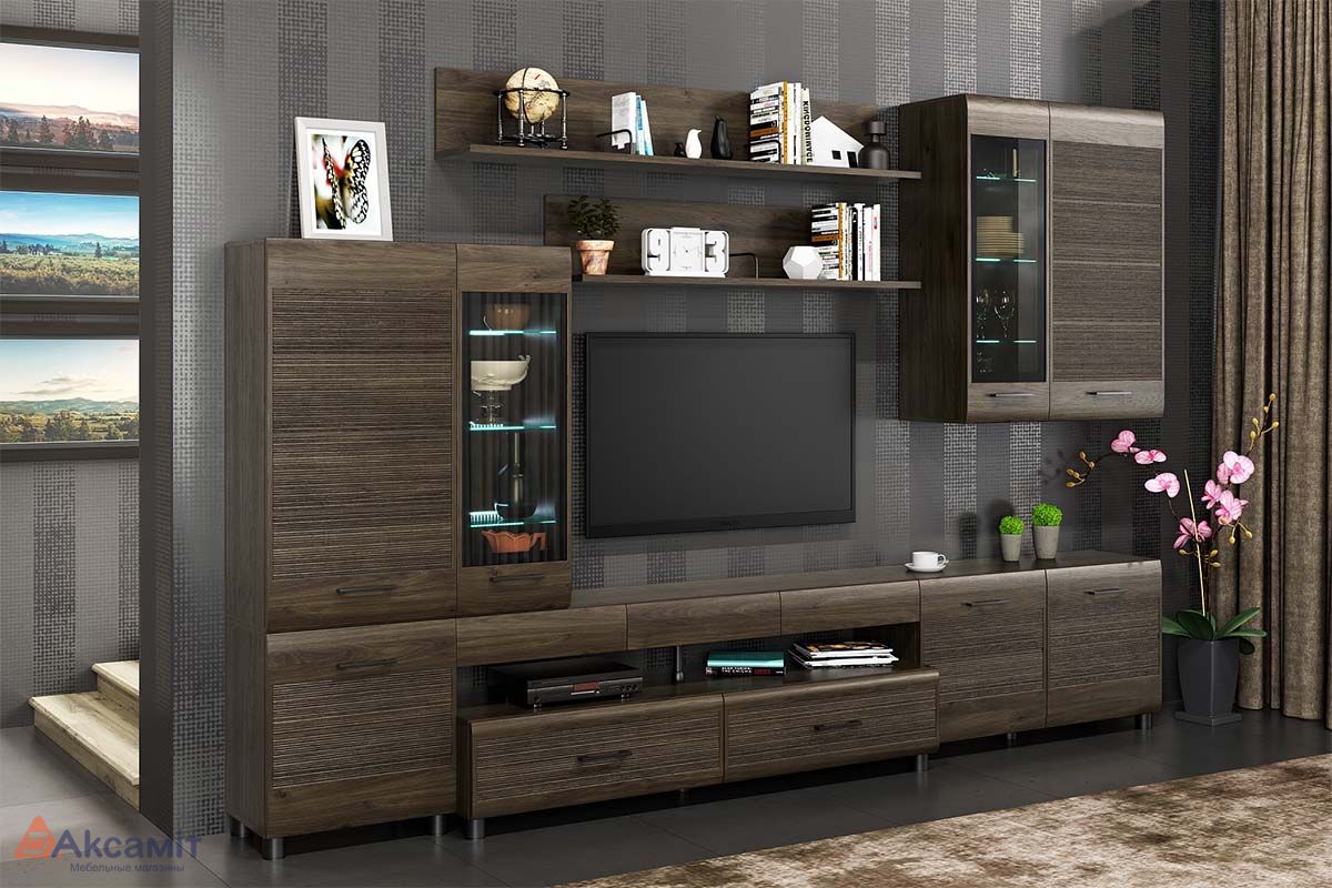 Модульная мебель для гостиной в стильном и гармоничном дизайне. Материал: МДФ, ЛДСП.