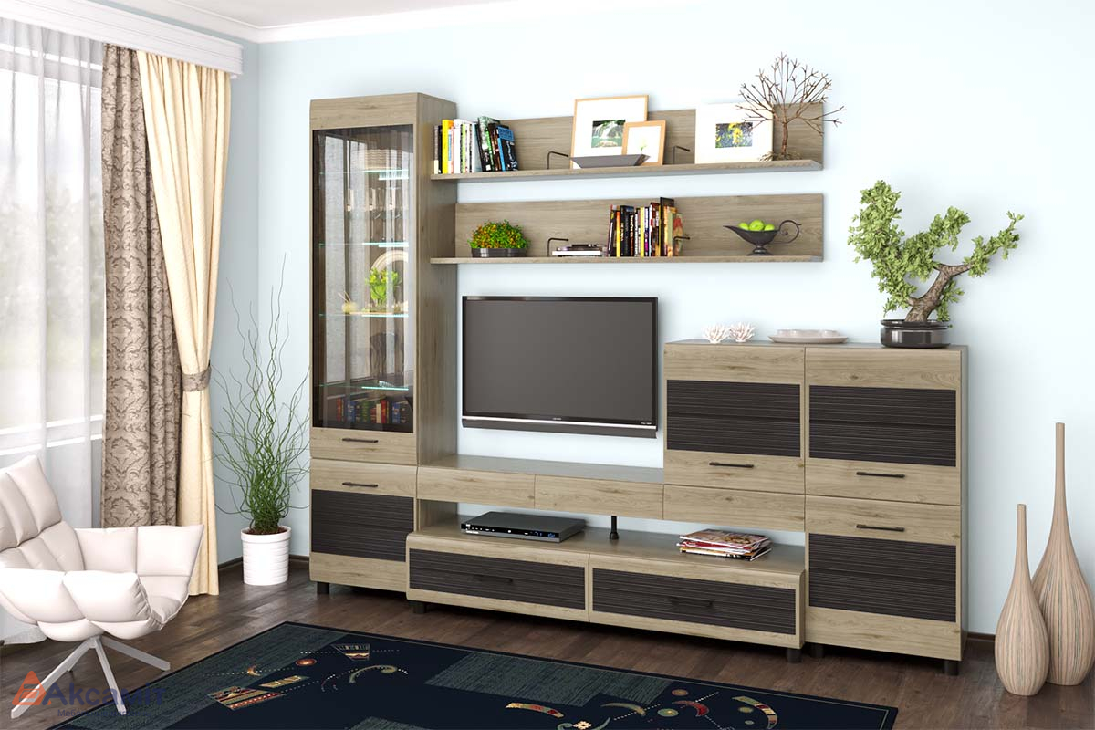 код 125544Модульная коллекция мебели в гостиную. Материал: ЛДСП, МДФ.