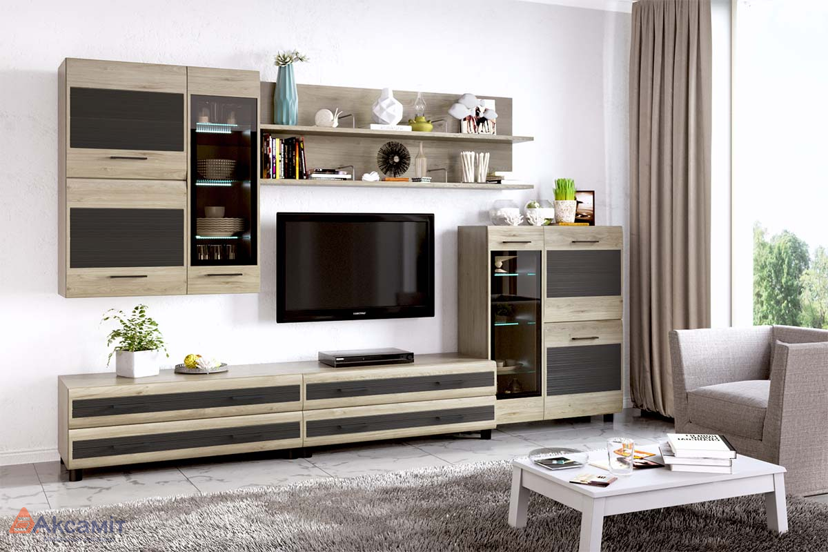 код 125543Модульная коллекция мебели в гостиную. Материал: ЛДСП, МДФ.