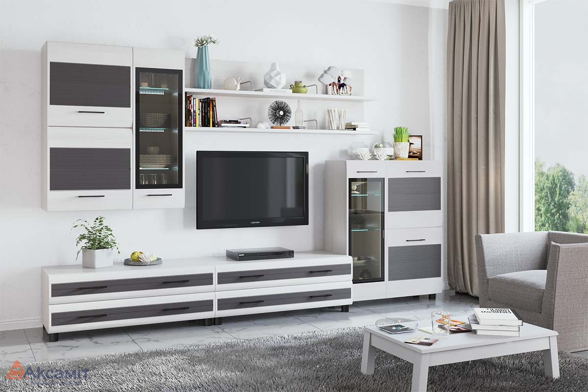 код 125554Модульная коллекция мебели в гостиную. Материал: ЛДСП, МДФ.