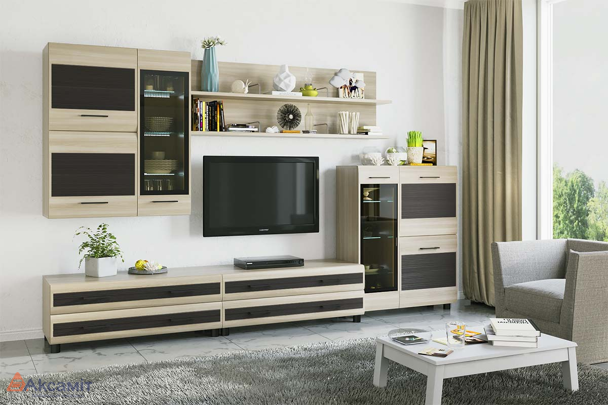 Модульная мебель для гостиной в стильном и гармоничном дизайне. Материал: МДФ, ЛДСП.