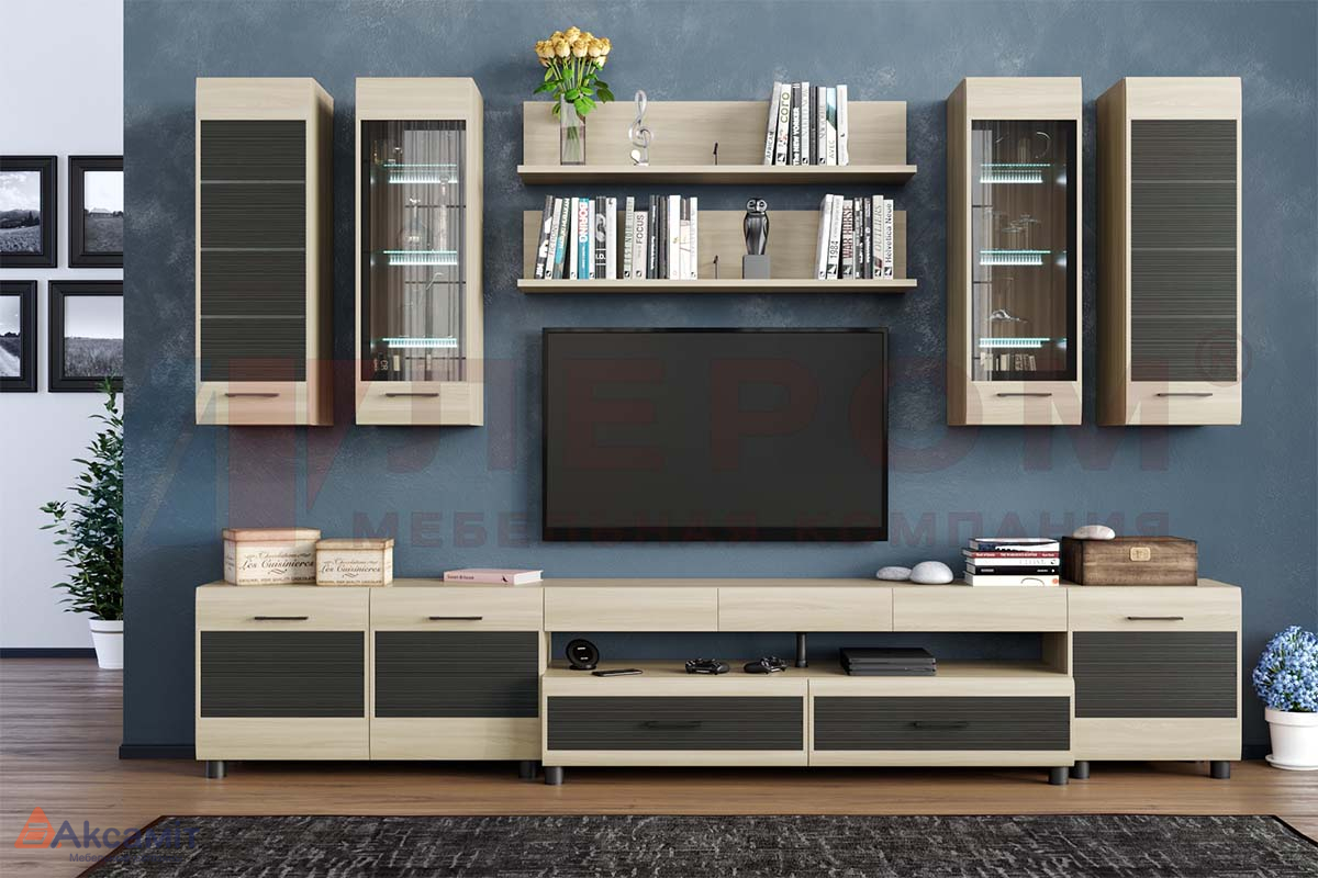 код 125528Модульная коллекция мебели в гостиную. Материал: ЛДСП, МДФ.