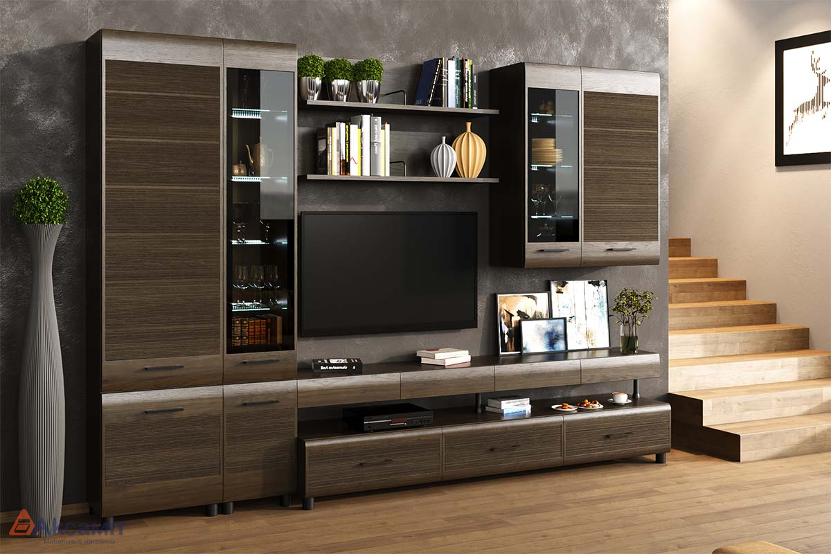 Коллекция модульной мебели для гостиной. Материал: ЛДСП, МДФ.