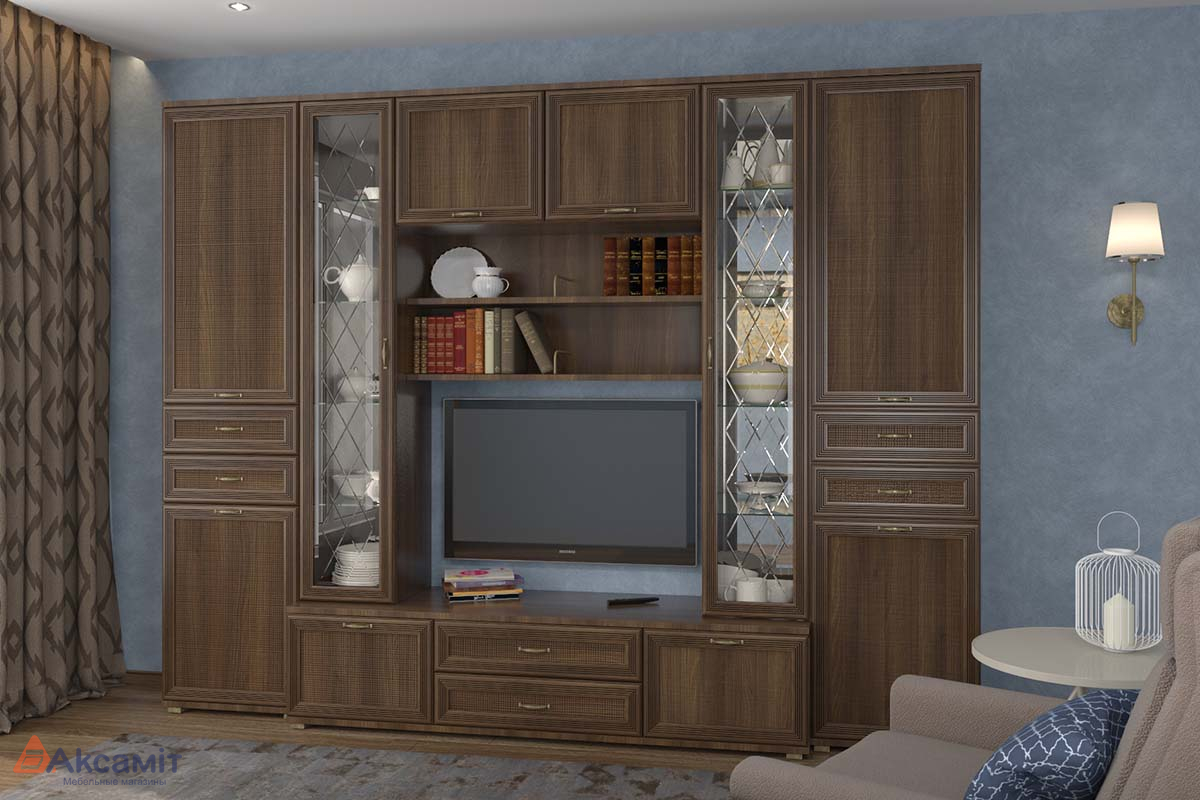 код 124742Материал: ЛДСП, МДФ. Набор мебели для гостиной в классическом стиле.