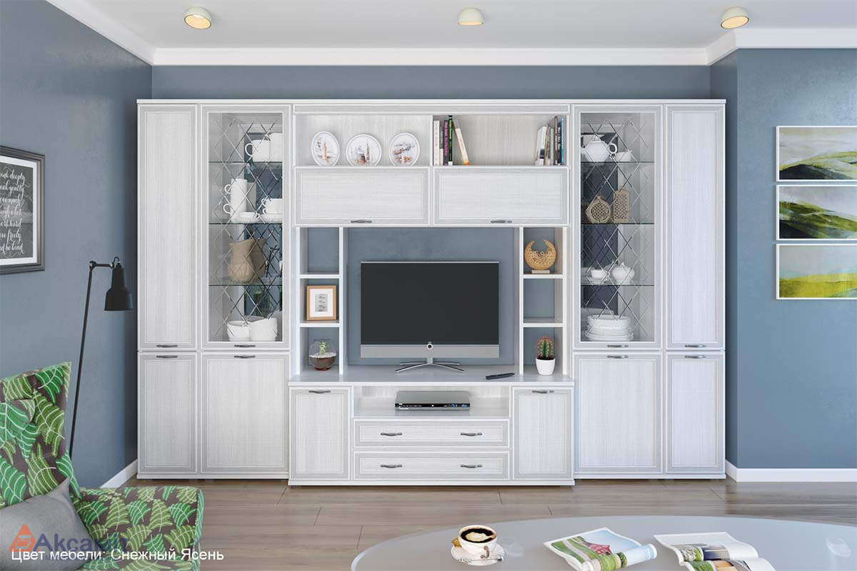 Гостиная «Монако» Комплект 1 - Ясень белый (BTS)