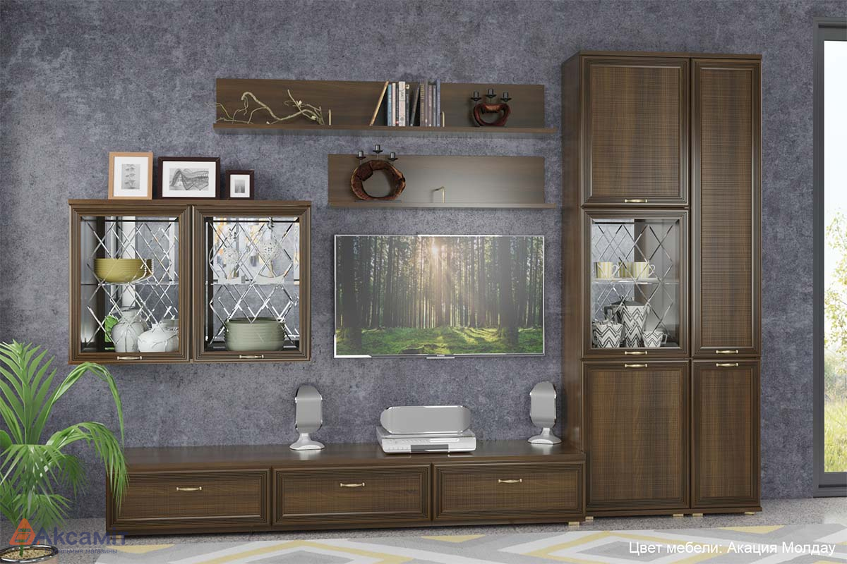 Корпусная мебель для гостиной "Карина" - это модульная мебель. Коллекция включает в себя более 70-ти оригинальных модулей, созданная с их помощью композиция отлично впишется в любое помещение. Программа «Карина» позволит создать уют и гармонию в гостиной.
