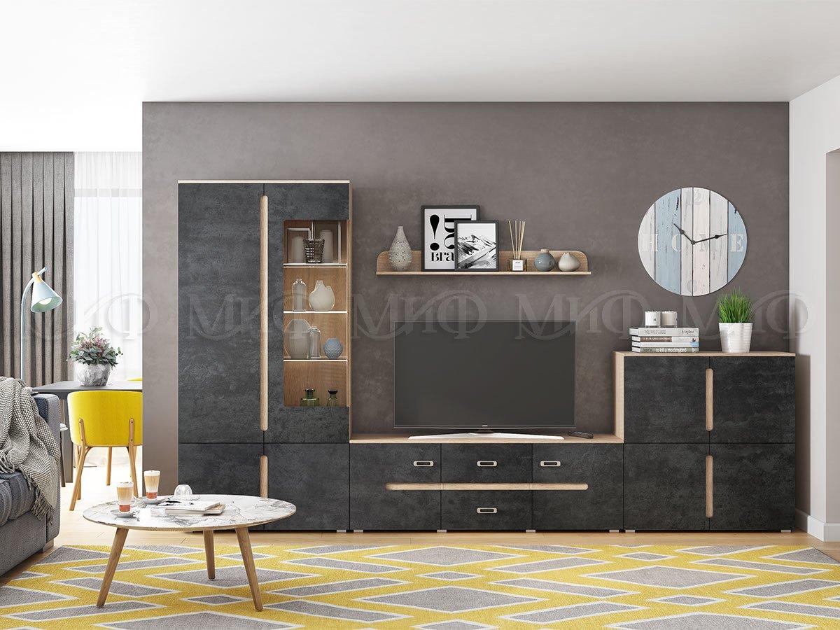 Модульная современная гостиная с фасадами из МДФ. Цвет: сонома / бетон темный.
