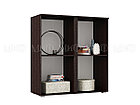Два остекленных стеллажа, ТВ-тумба, комод, журнальный стол, подвесные полки.
