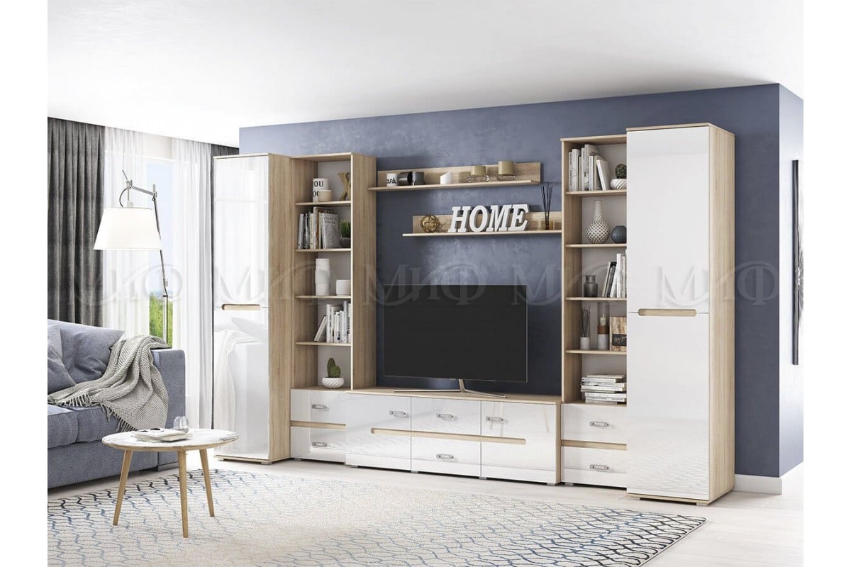 Гостиная «Ким-2» (белый глянец - дуб сонома)