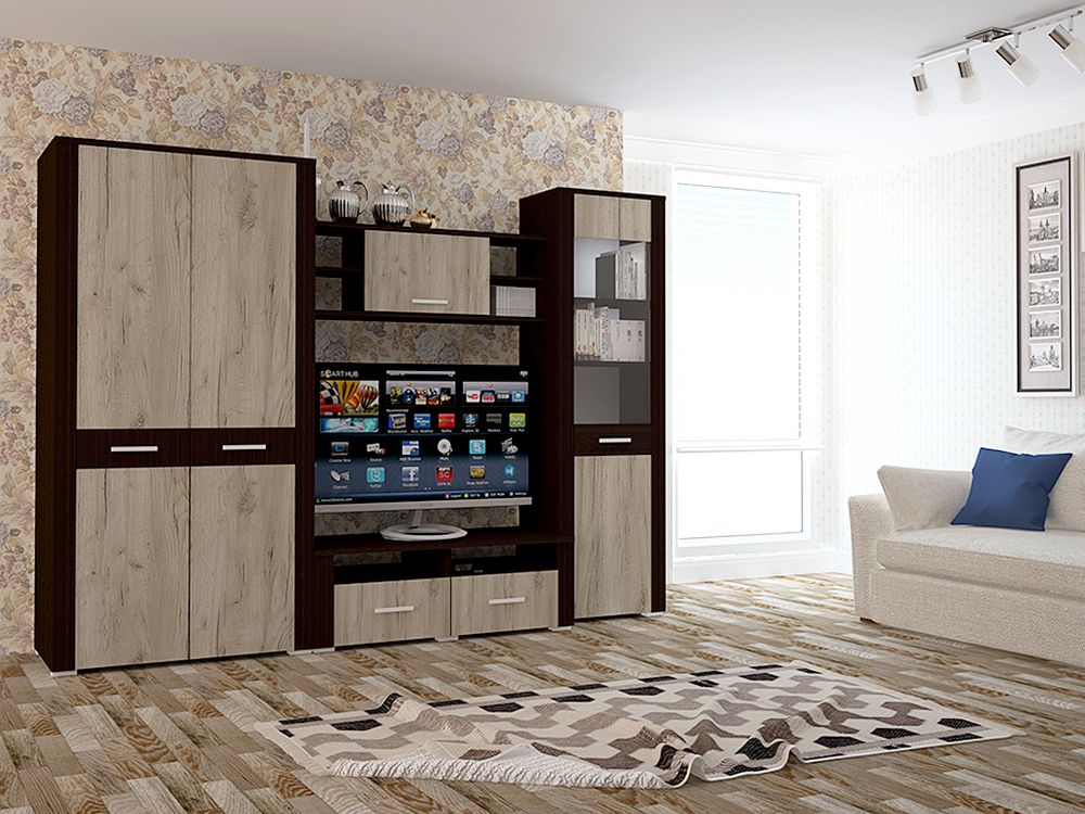 Гостиная «Коламбия-1» дуб серый-дуб венге