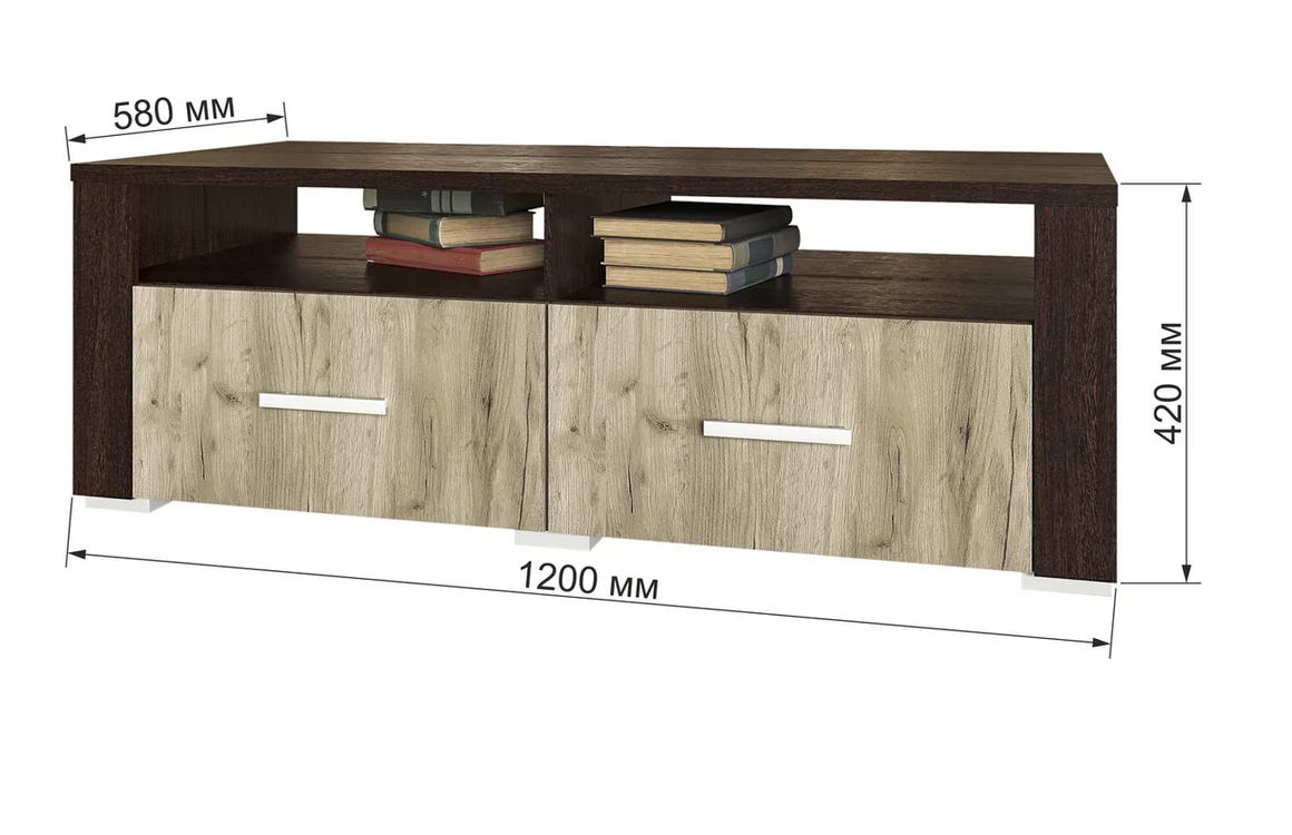 - Размер места под ТВ: 1200 мм.