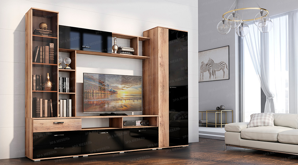 Гостиная «Крокус» Дуб делано / Черный глянец
