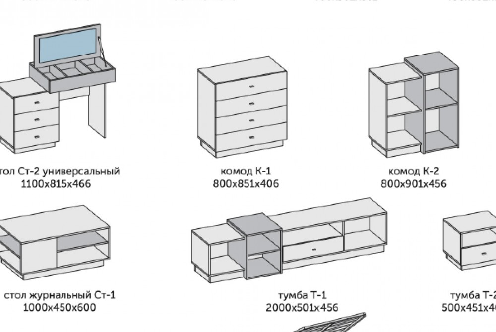 Цена указана на комплектацию, которая показана на первой картинке (Комод К-3, Зеркало З-1, Тумба Т-1, Антресоли Ан -1, Ан-2 , Ан-3)