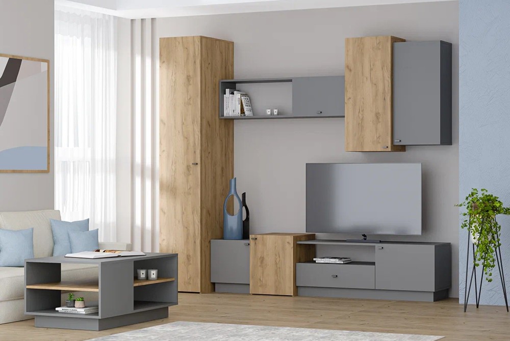 Модульная гостиная «Сканди» композиция 3 (Графит, Дуб Вотан)