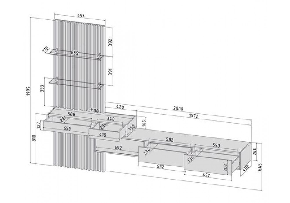 Размер: 3500х400х1805 мм. Материал: ЛДСП.