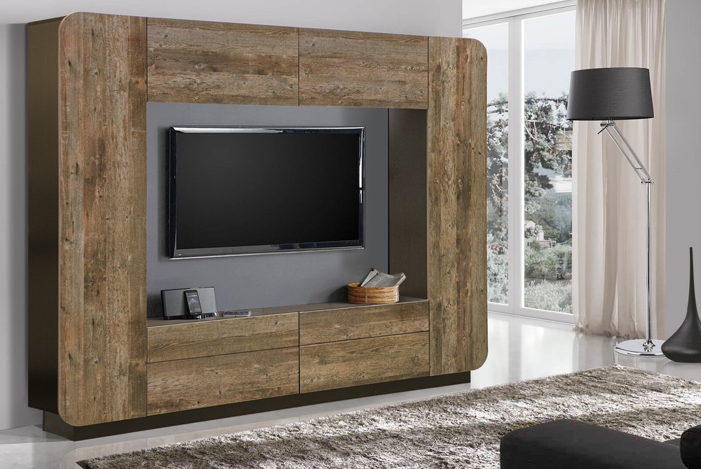 Функциональная стенка с современным дизайном. Темно-светлые фасады.