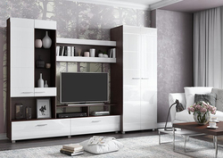 Гостиная «Лия-2 со шкафом» Венге/Белый глянец Рикко