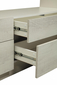Внизу имеется четыре вместительных выдвижных ящика (комплектуются шариковыми направляющими) и два больших отделения вверху (комплектуются газлифтами) В каждой боковой секции по пять полок. Все дверцы, кроме верхних, оснащены толкателями.