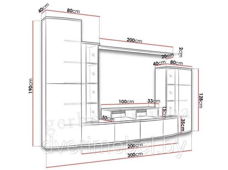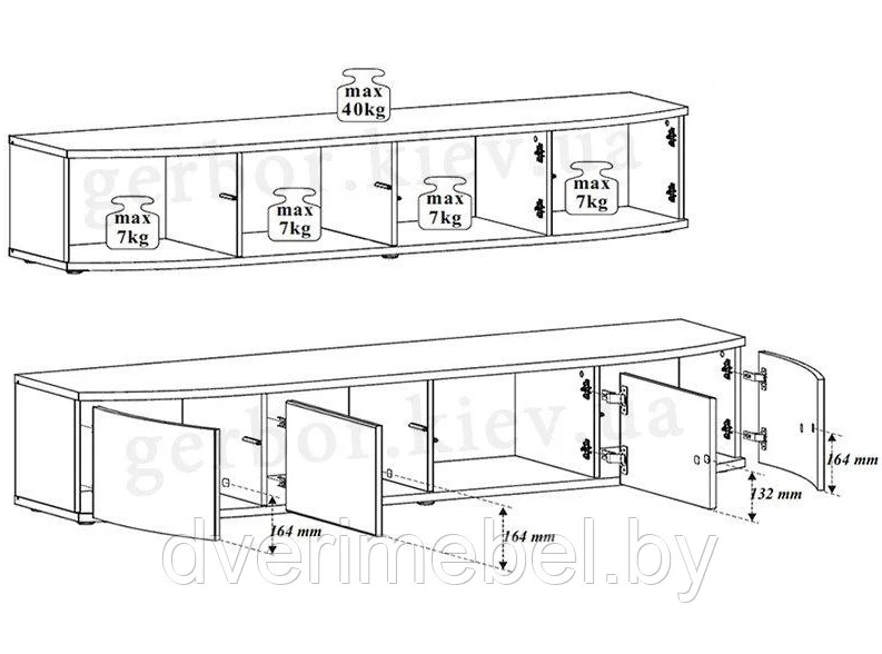 шир./выс./гл. – 200/35/50 см, четыре двери (боковые с гнутым фасадом);