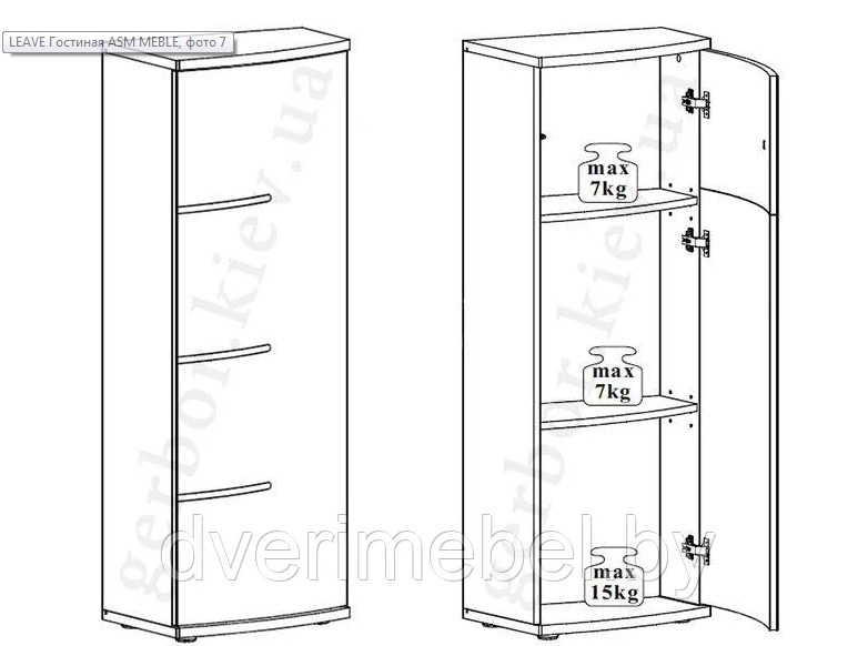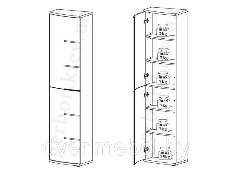 шир./выс./гл. – 50/190/40 см, две двери с гнутым фасадом;
