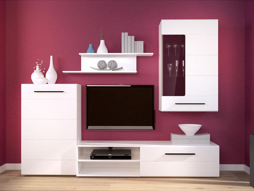 Гостиная Лена - это компактный гарнитур для гостиной универсального белого цвета.